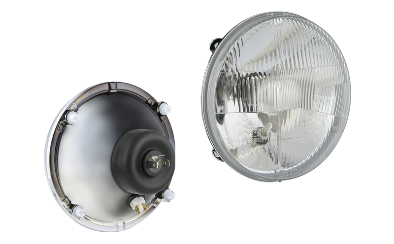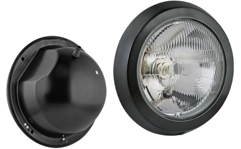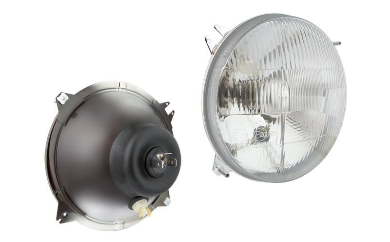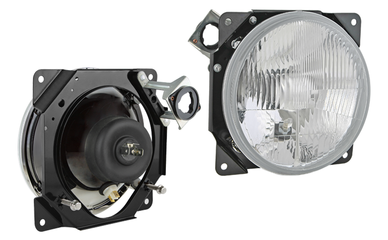 Proiettore anteriore di tipo R2 in involucro metallico (luci: anabbaglianti, abbaglianti, posizione)