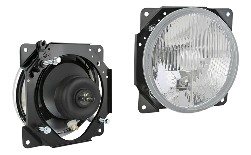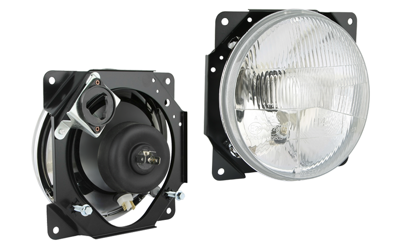 Proiettore anteriore di tipo H4 in involucro metallico (luci: anabbaglianti, abbaglianti, posizione)