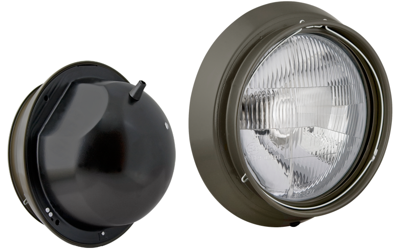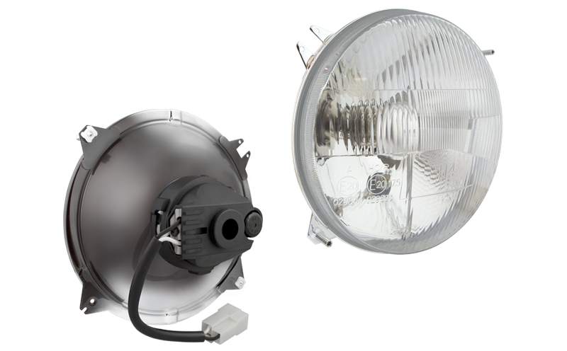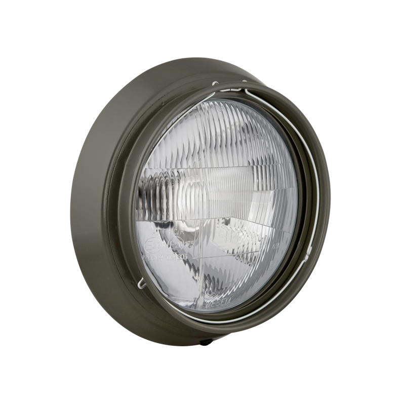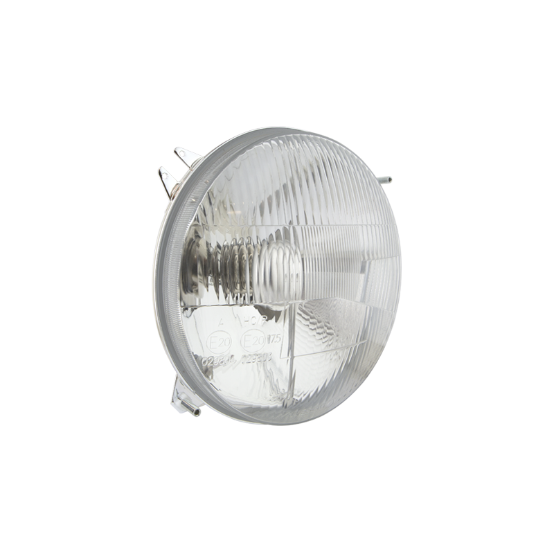 lampadina H4 24V, connettore AMP Faston, telaio a tunnel, correttore manuale, lampada IP66, cavo 0,1 m