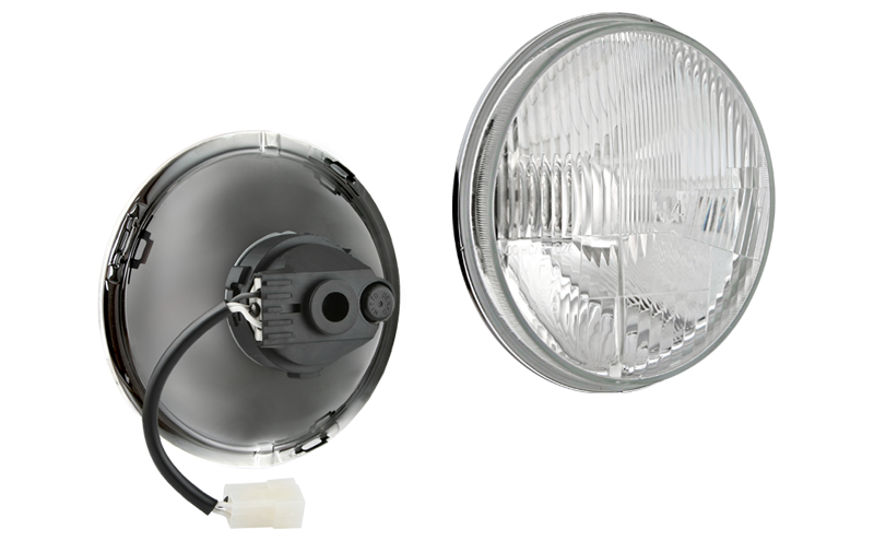 lampadina H4 24V, conn. AMP Superseal, telaio a tunnel, correttore manuale, lampada IP66, cavo 0,5 m