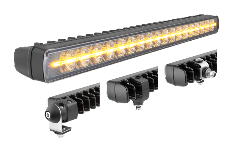 Faro da lavoro con LED, luce di posizione arancione e staffe: posteriore, inferiore, laterale